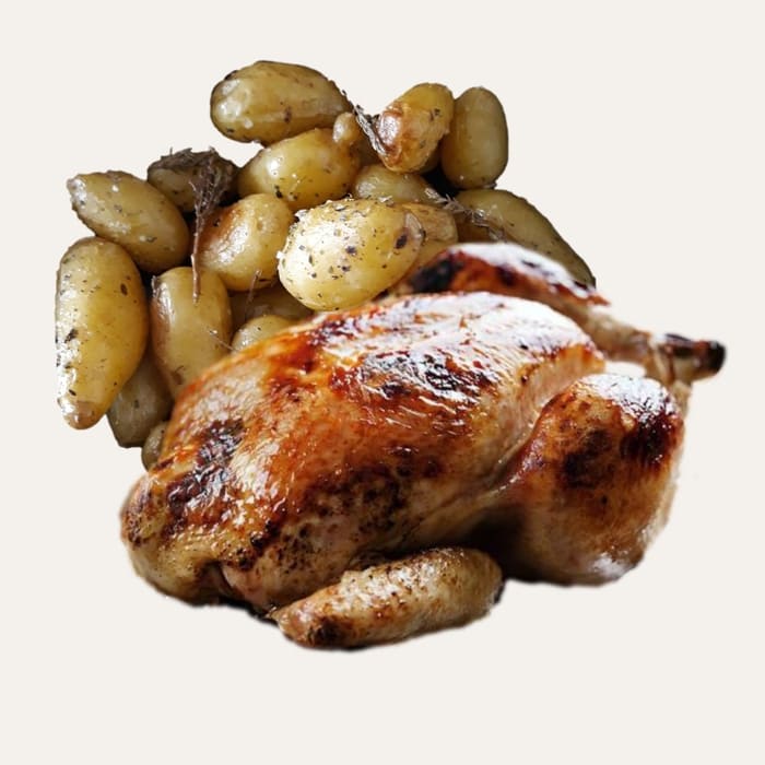 Notre coquelet rôti vous surprendra. Cette recette allie la finesse d’une volaille française à la chaleur des épices d’Orient. En effet, nous avons conçu ce plat comme une invitation au voyage, à la fois saine, savoureuse et raffinée. Nous vous promettons une dégustation mémorable, pleine de goût et de légèreté.