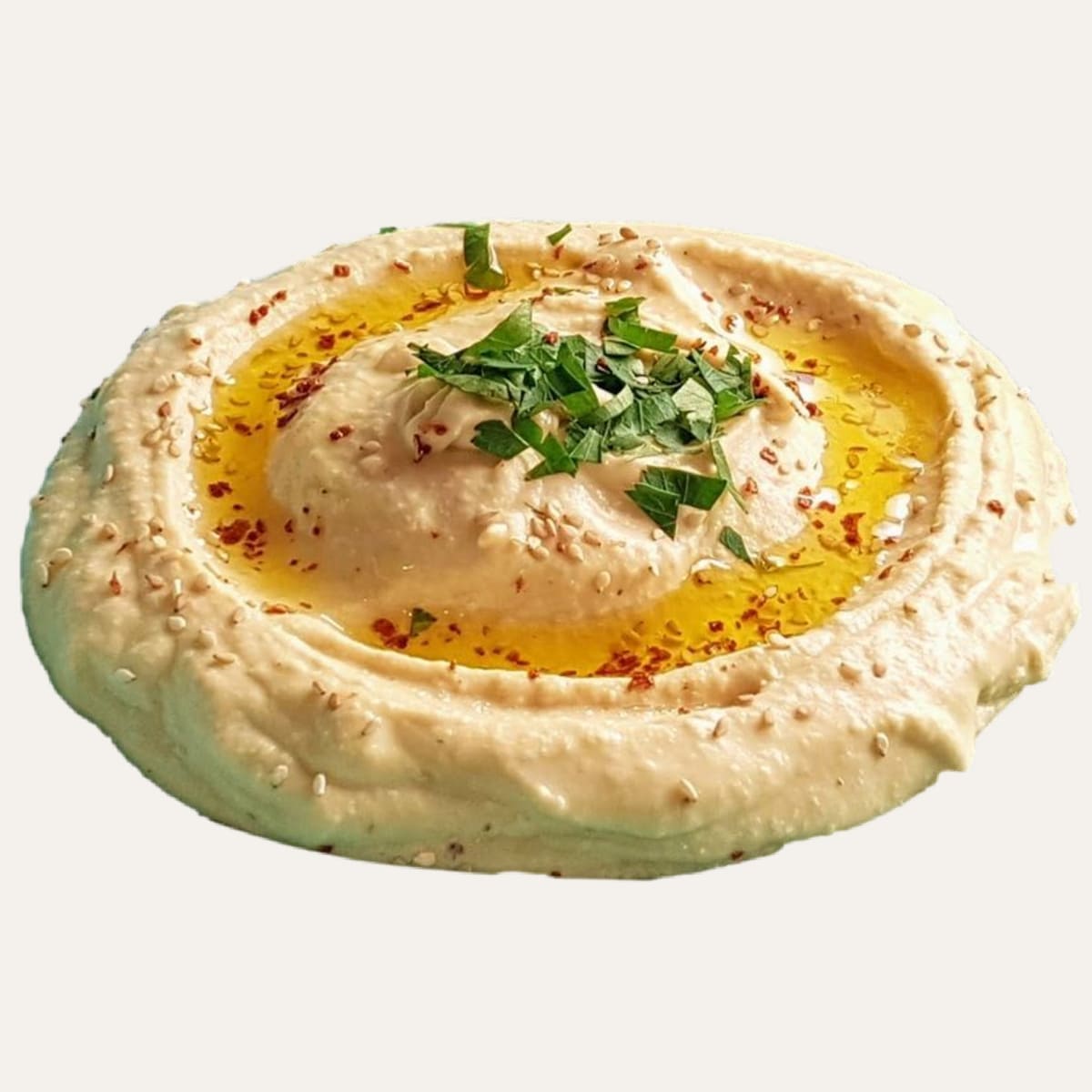 Découvrez notre trésor gourmand : un houmous onctueux, préparé artisanalement avec du jus de citron frais et de l’huile d’olive bio.